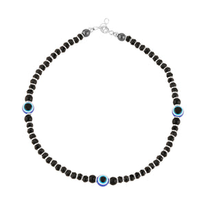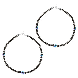 Home 92.5 Sterling Pure Silver (Chandi) Pair of Black Nazariya Evil Eye Payal