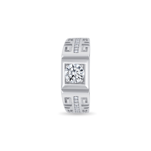 Luxury Sterling Silver Ring with Round Solitaire and Versace-Inspired Design: A sophisticated piece for discerning taste.