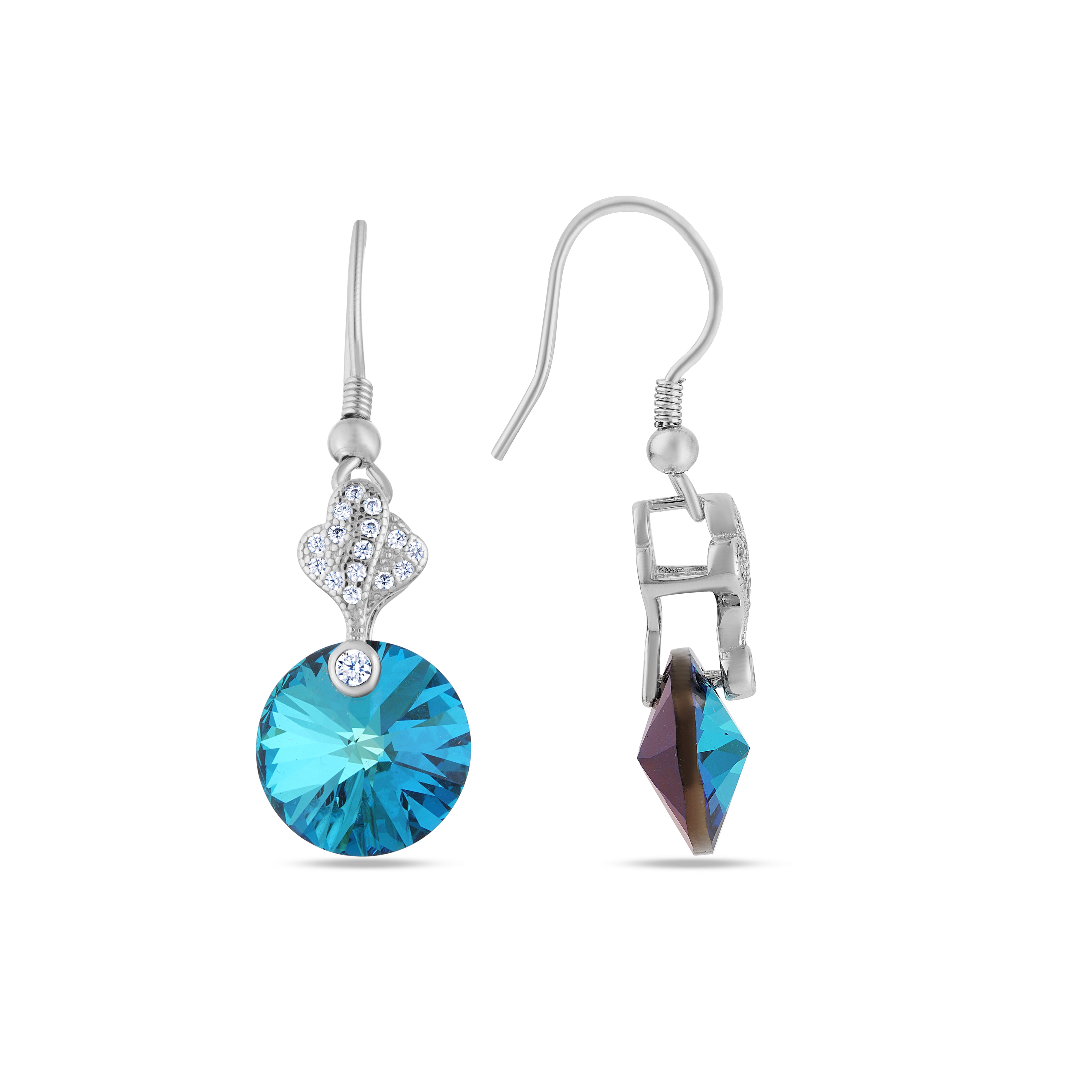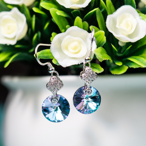 • Elegant Sparkle: Features a brilliant blue crystal drop with shimmering CZ-studded floral design.