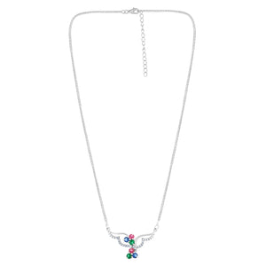 925 Sterling Silver Multi-Color CZ Floral Pendant Necklace